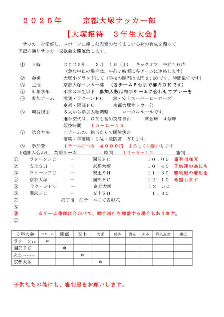 さて、U-9大塚招待の詳細を下記の通りお知らせいたします。