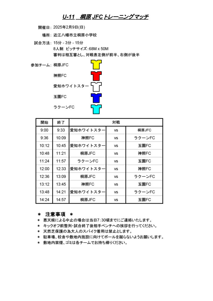 ※GKはグレーユニフォームを着てきてください。