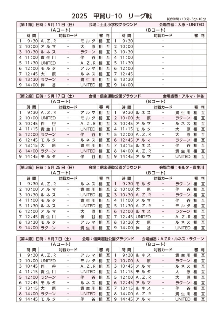 さて、U-10リーグ戦の詳細を下記の通りお知らせいたします。